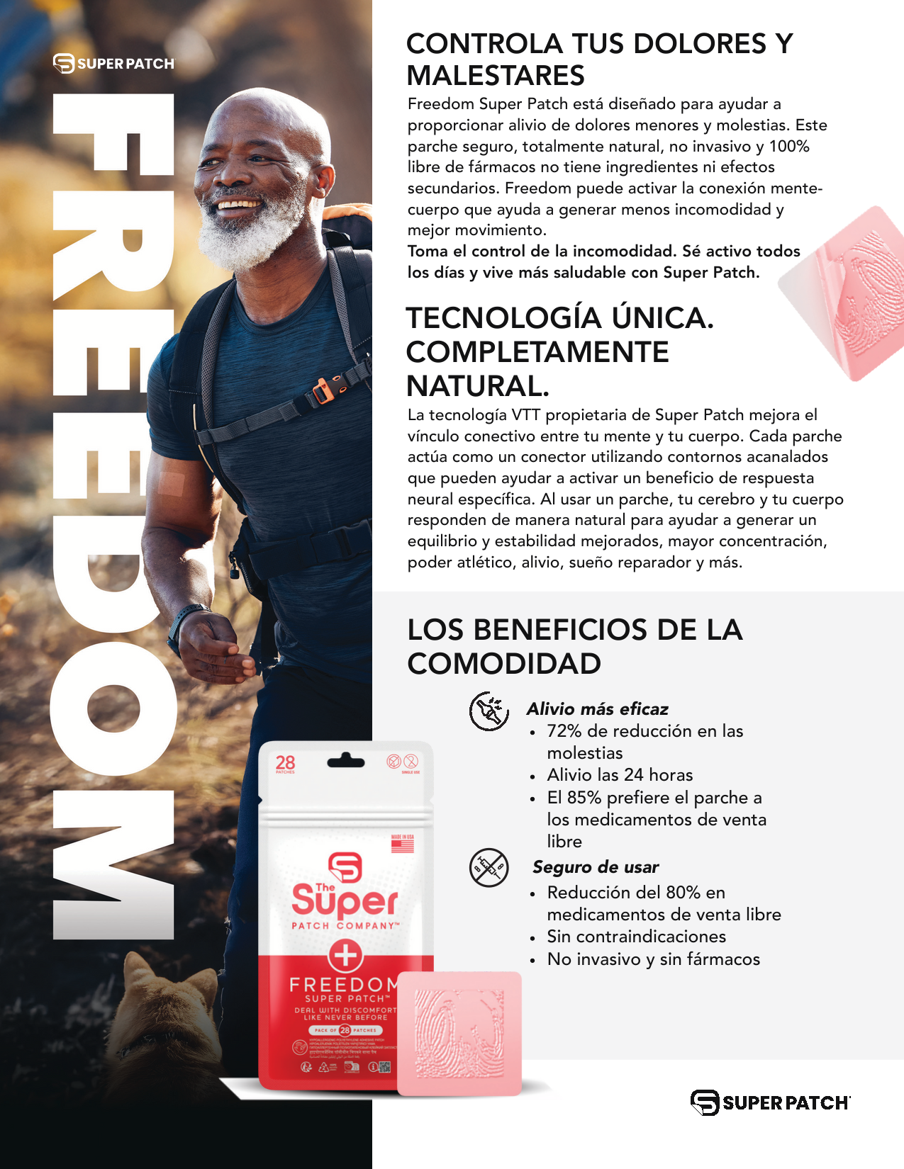 Toma el control de la incomodidad. Sé activo todos los días y vive más saludable con Super Patch.